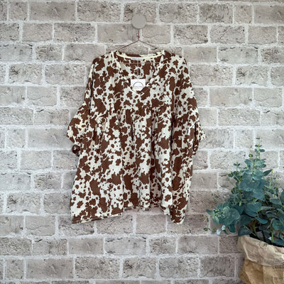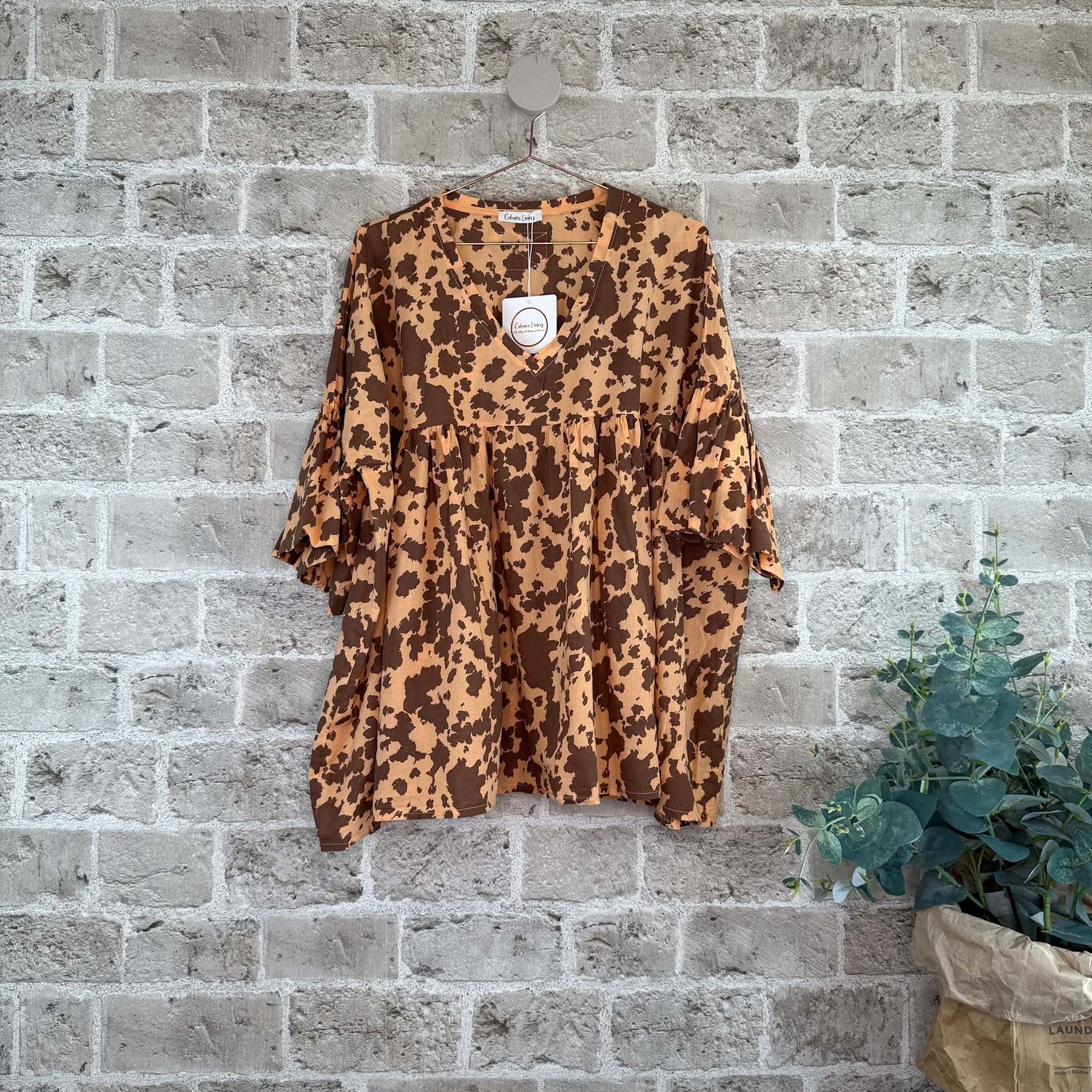 ❥ Mål på størrelse: Onesize - Mål over bryst: 80 cm - Målover bryst udstrakt: 80 cm - Mål i bund: 131 cm - Længde front: 73 cm - Længde Bag: 73 cm - Ærme udvendig: 48 cm - Ærme indvendig: 18 cm