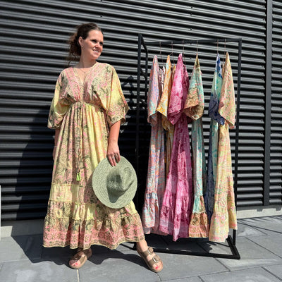 Kjole med print i pakke med 6 stk. Assorteret. Prisen er pr. stk.