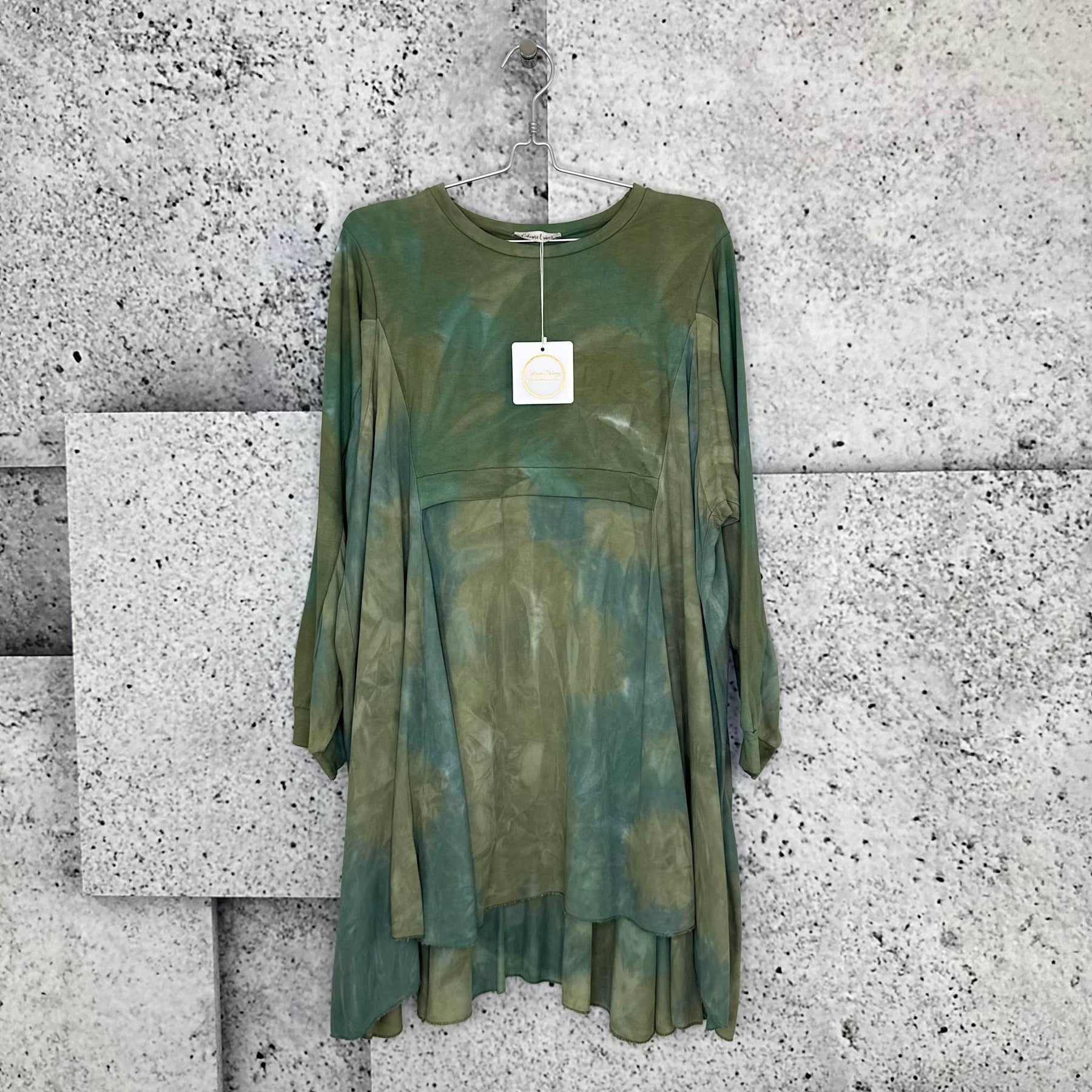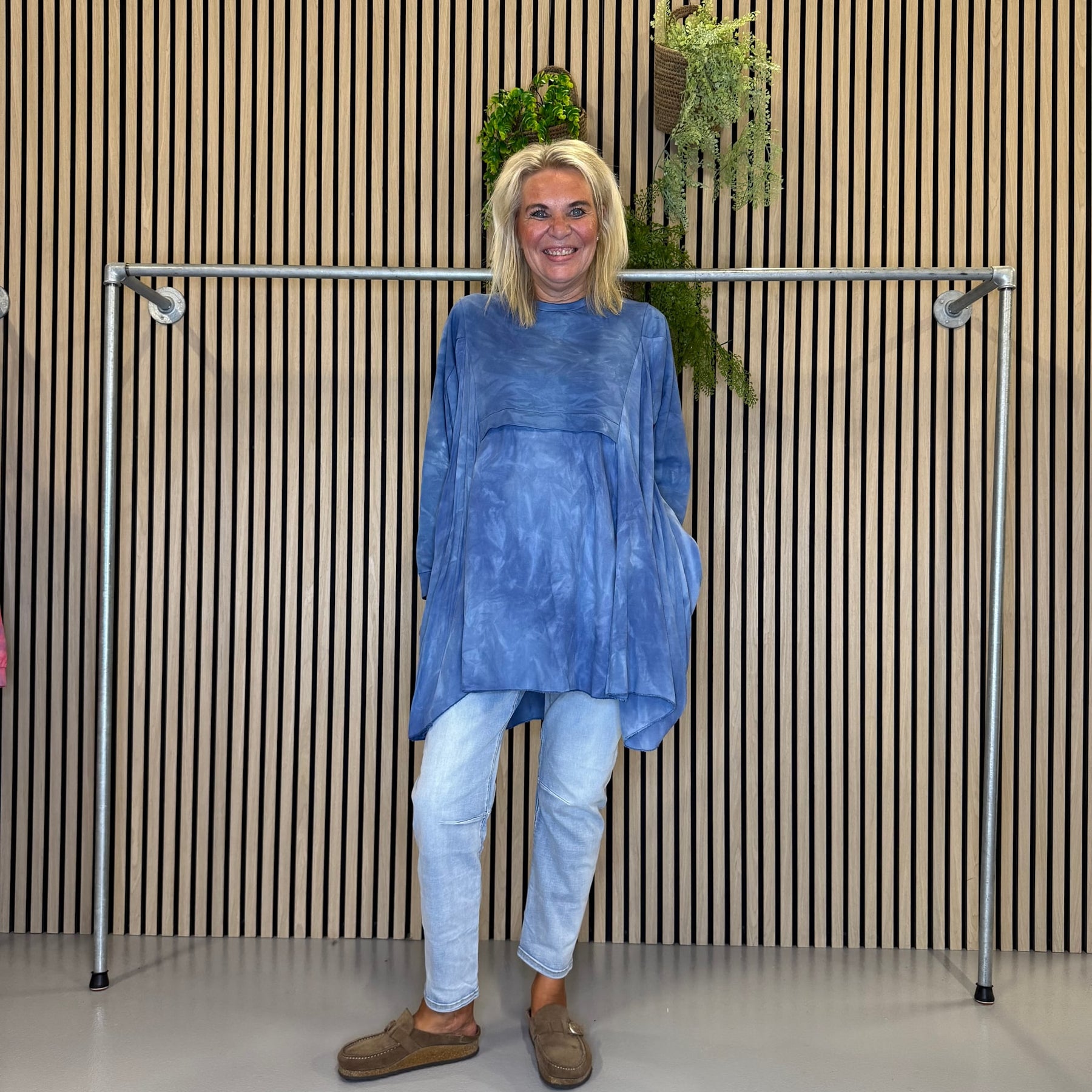 ❥ Mål på størrelse: Onesize - Mål over bryst: 75 cm - Mål i bund: 150 cm - Længde front: 84 cm - Længde Bag: 92 cm - Ærme udvendig: 69 cm - Ærme indvendig: 56 cm