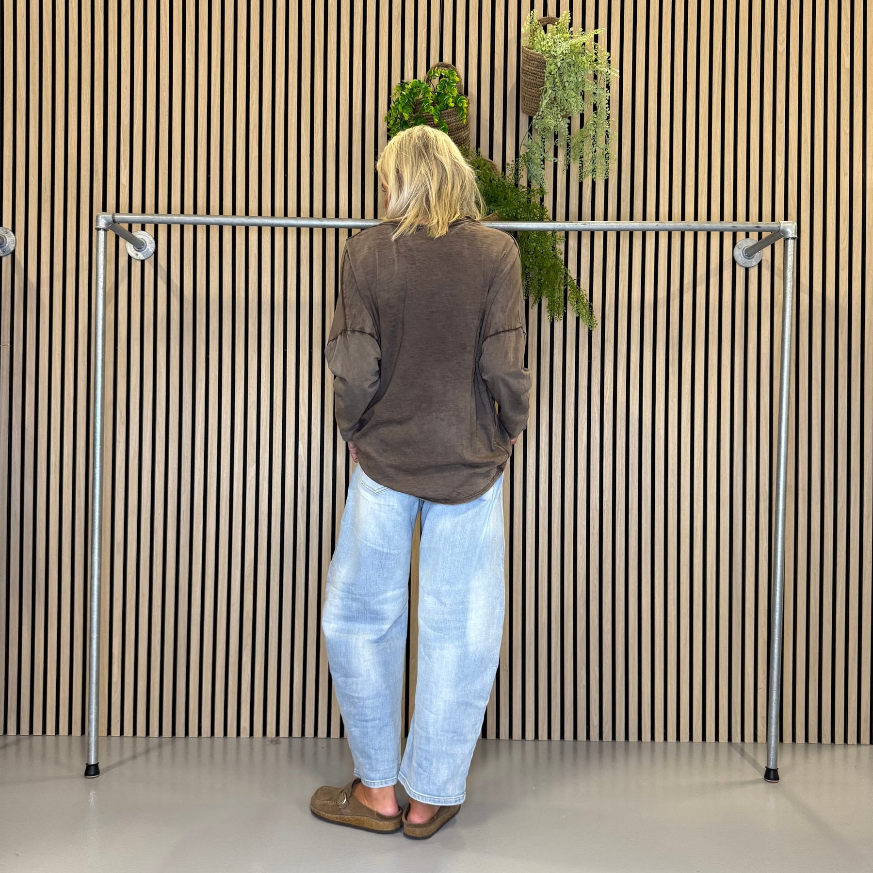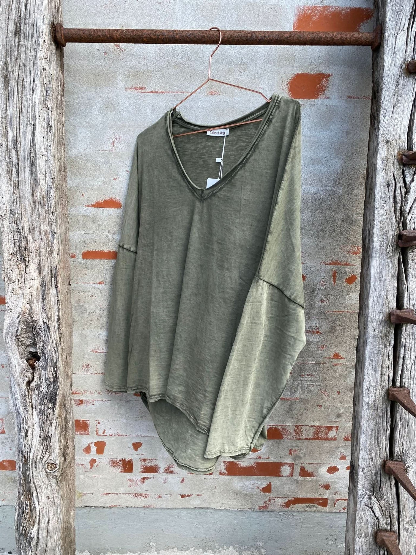 ❥ Mål på størrelse: Onesize - Mål over bryst: 69 cm - Målover bryst udstrakt: 76 cm - Mål i bund: 64 cm - Længde front: 70 cm - Længde Bag: 76 cm - Ærme udvendig: 74 cm - Ærme indvendig: 36 cm