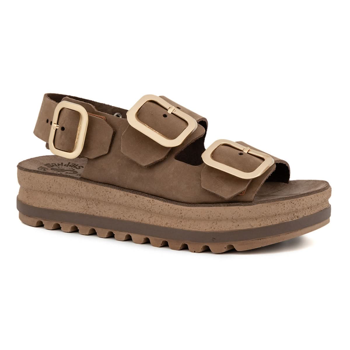 En smart sandal der lukkes med 1 spænde i siden og 2 hen over foden