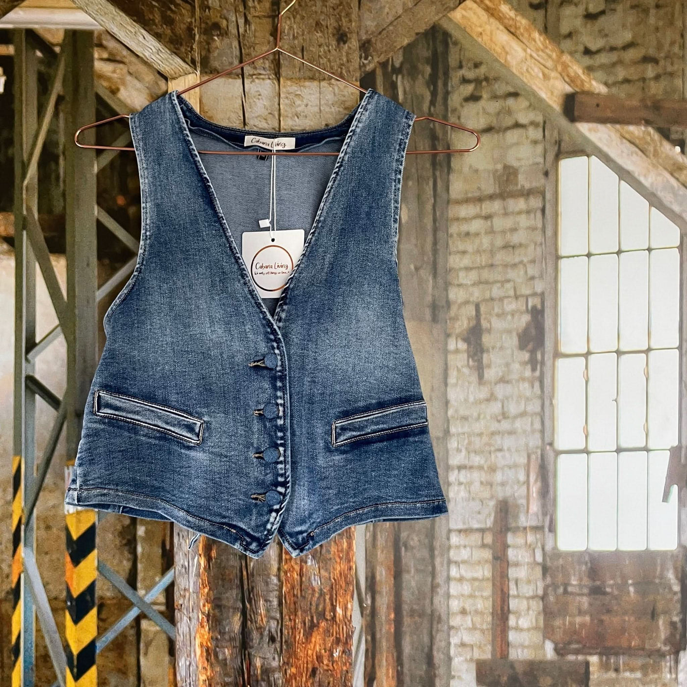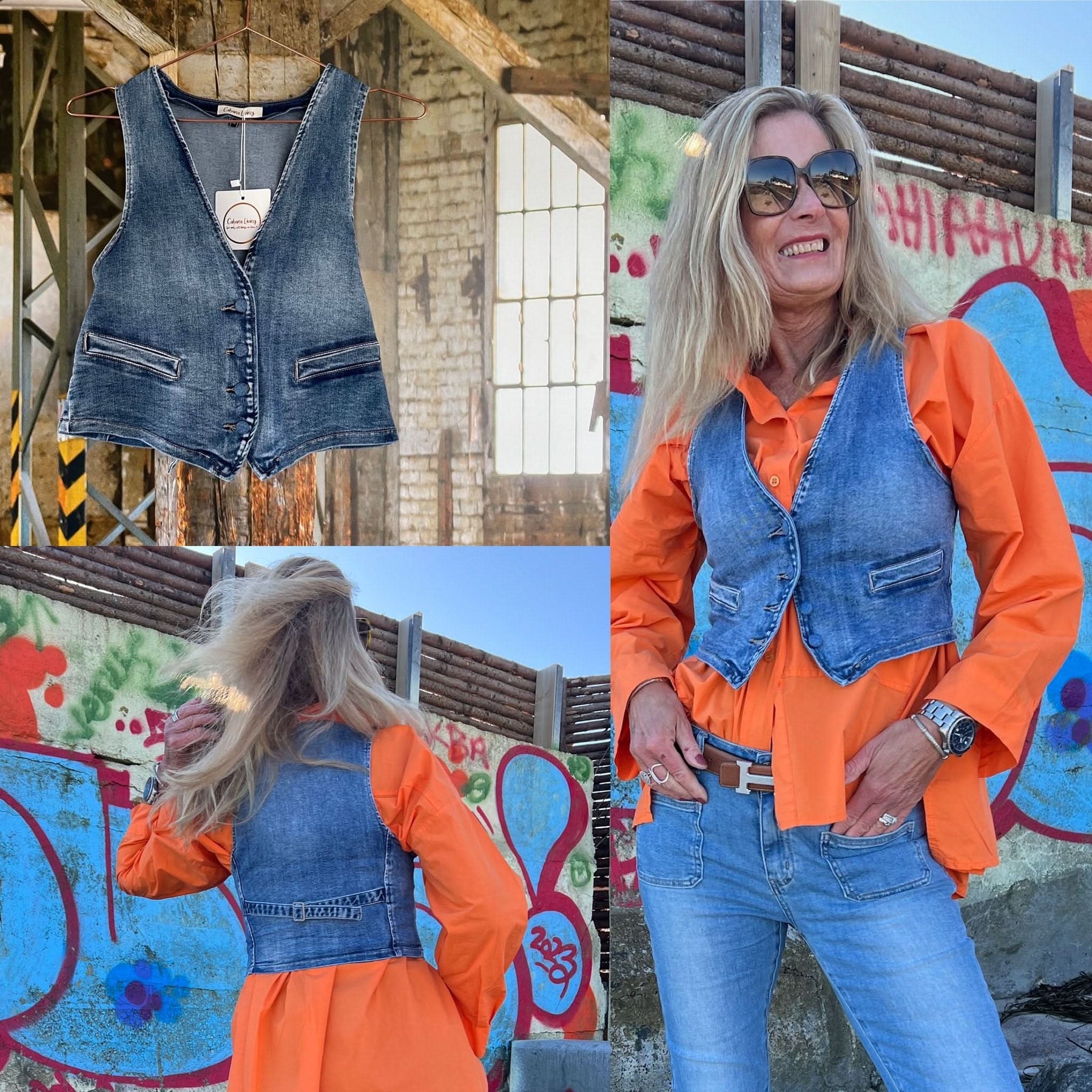 Klassisk denim vest med slid og stretch. Vesten er lille i størrelsen, og det anbefales at gå en str. op.